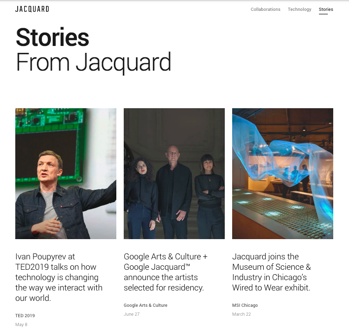 At Google ATAP, I supported the launch of Jacquard by Google wearable tech platform. My work spanned product storytelling, editorial content, and launch messaging for a next-generation interaction technology built into everyday objects.I led community engagement, GTM strategy and content development for a visionary wearable-tech platform blending fashion and technology.